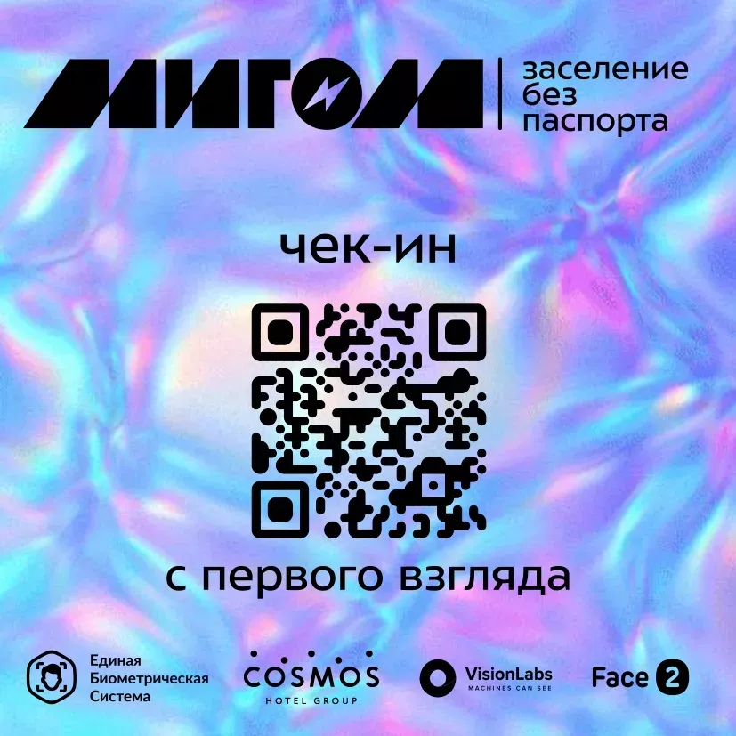 О возможности заселиться в гостиницу по биометрии можно узнать в момент бронирования номера на сайте, а также при заселении. Ищите логотип «Мигом» на страницах бронирования и в лобби отелей